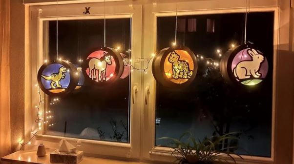 Die Idee ist, dass jede*r eine oder mehrere Laternen in ein Fenster hängt, das am besten zur Straße hinzeigt und bringt sie mit Lichterketten oder LED- Lichtern zum Leuchten. Nun können kleine und große abendliche Spaziergänger*innen und Laternenläufer*innen die tollen Laternen bestaunen. Wir fänden es schön, wenn die verschiedenen Familien ein Symbol zu ihrem Kindergarten dazu aufhängen, damit man sieht aus welchem Kindergarten die Kinder kommen. Die Schulkinder können Schulranzen oder ähnliches malen oder basteln. Wir sind sicher, Ihr seid alle super kreativ und sind sehr gespannt auf Eure Ideen.