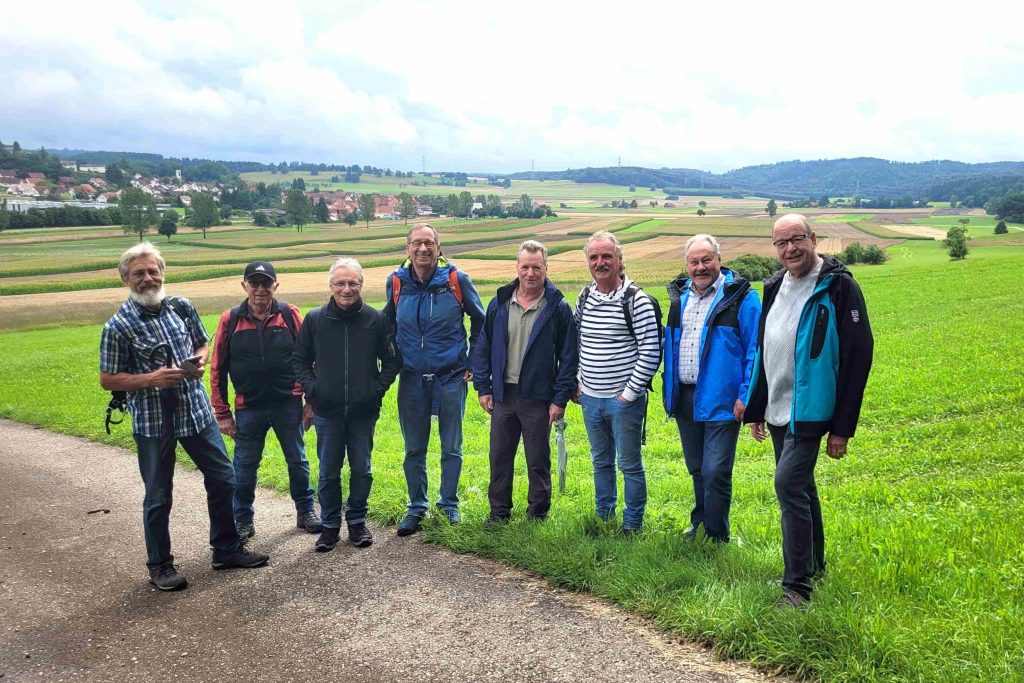 Zum Start ließ das Wetter allerdings noch zu wünschen übrig, Sonnenschein und Wärme waren nicht in Sicht, und die Fahrt hinauf auf die Albhochfläche wurde von Regenschauern begleitet. In Bleichstetten stiegen alle aus, um gemeinsam nach Gächingen zu wandern. Pünktlich zum Start hatte das Wetter ein Einsehen, die Sonne zeigte sich und die Regenschirme blieben überflüssig.