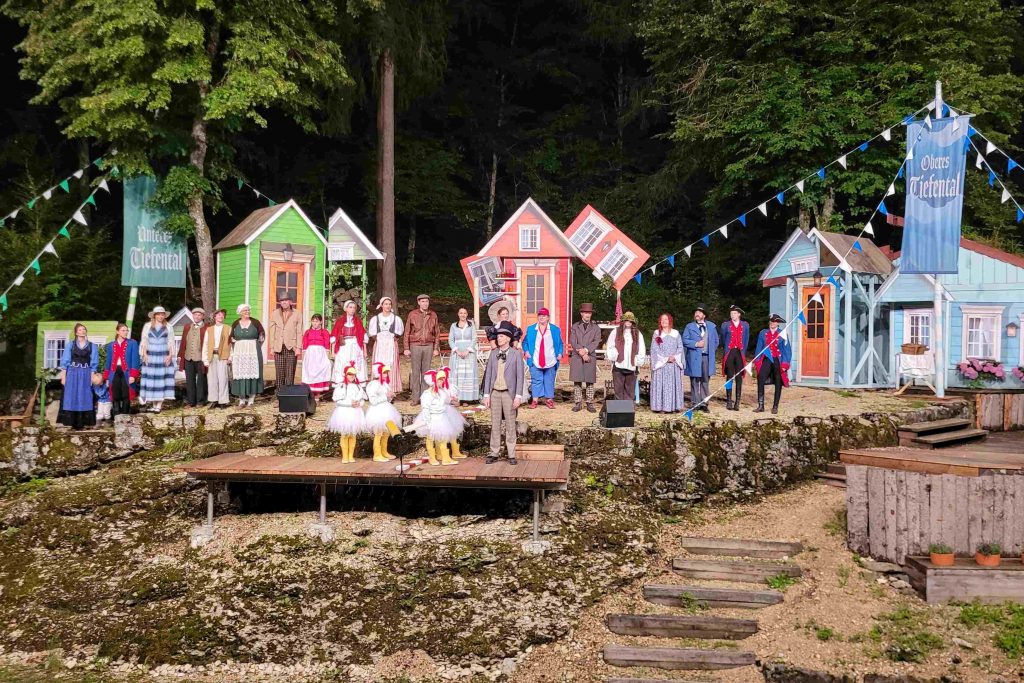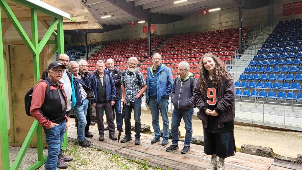 Gestärkt ging es weiter nach Hayingen, wo wir im Naturtheater die Vorstellung „Friede, Freude, Pfannakuacha“ besuchten. Diese Freilichtbühne zählt zu den schönsten des Landes, romantisch gelegen in einer Waldlichtung mit kleinen Steintreppen und Mauern. Vor Beginn erhielten wir als Gruppe noch eine spannende Backstage-Führung, die von einem der Schauspieler unterhaltsam und informativ gestaltet wurde.