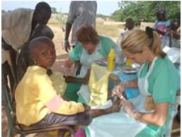 Vor Ort: ca. 800 Kinder werden medizinisch untersucht und Wunden behandelt (bei jedem Besuch der Delegation)